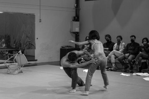 Two years since their last production Lucy. tutorial for a ritual, the collaboration between Martha Pasakopoulou and Aris Papadopoulos is in its essence put under the microscope and is examined as an attempt to perform friendship on stage. The two interpreters, but also friends, collaborators and artistic partners, delve into a common archive of movement material, dance practices and notes, which while drawing from the past is being constructed on stage. In the process of finding out what really matters, they re-shape it, reintroduce themselves and bring to surface that intangible in-between space. “The property of neither, the potentiality of both”. The audience is present as yet another viewpoint, a reflector of the duo’s friendship and its need to be witnessed.