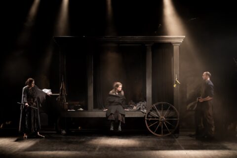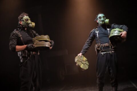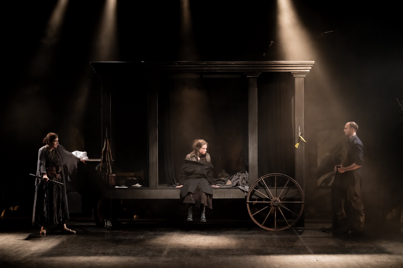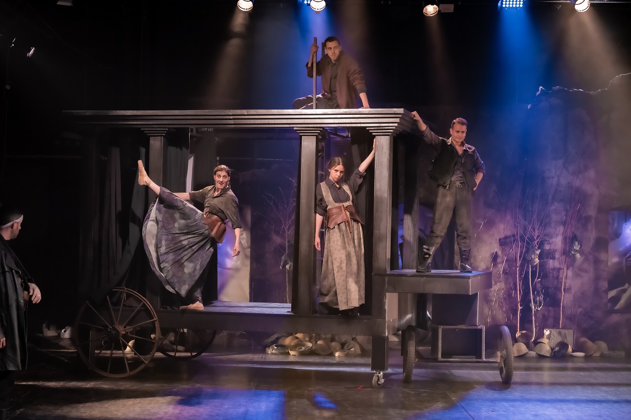 Мајка Храброст доаѓа – продава чизми, гас-маски, борбен дух натопен во крвава пареа, солзи и религиозно лудило. Таа е хиената на бојното поле, некрунисаната кралица на воениот капитализам. Во режија на Дејан Пројковски, безвременската антивоена приказна на Брехт станува искрена, трогателна семејна сага за тоа како војната ги голта своите деца – но и за тоа како работата мора да продолжи, без разлика на сè. Еве ја Мајка Храброст! Приближете се!